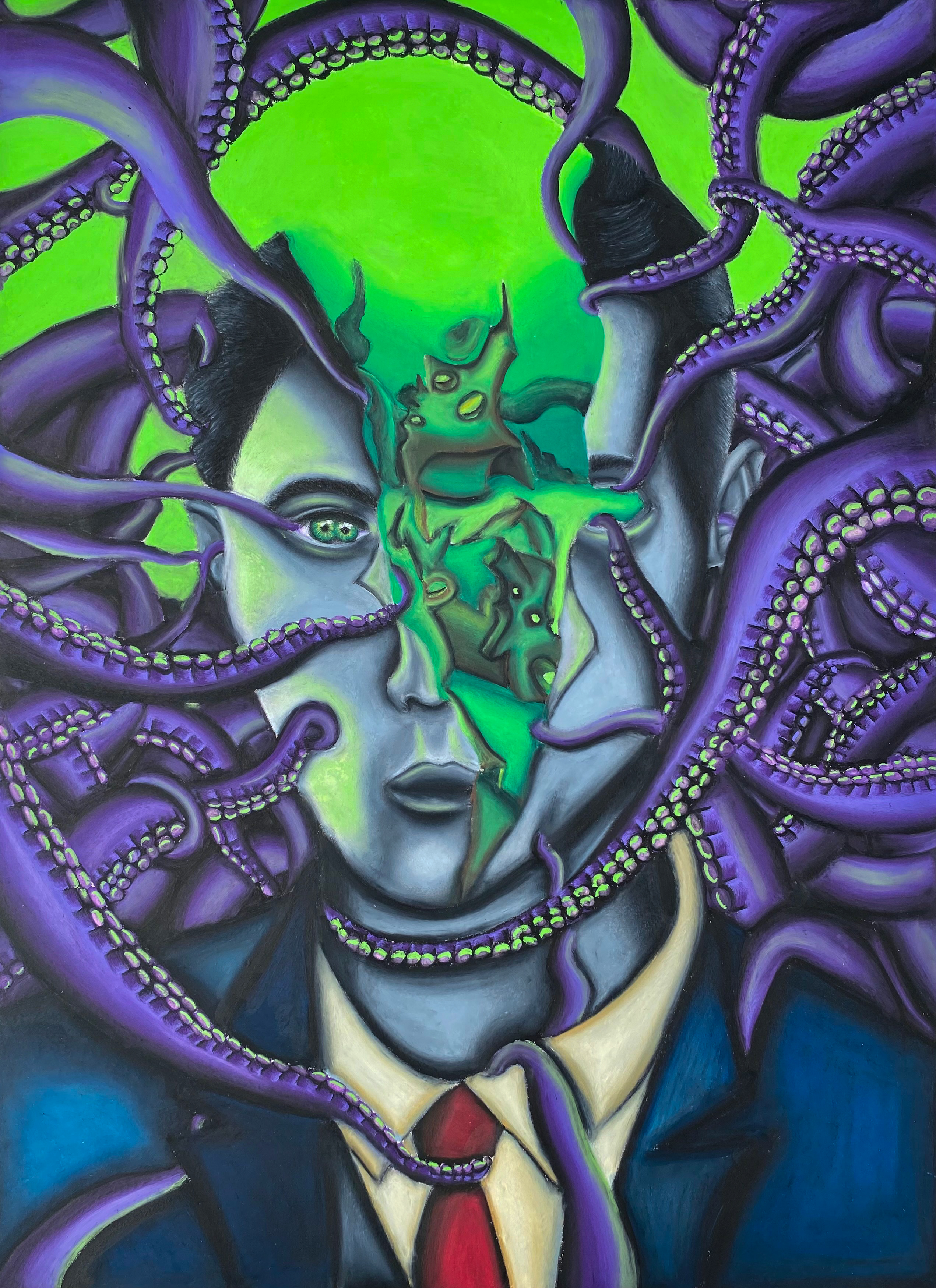 My name is Alaina Tesarek. I am a 20 year old indigenous artist studying interior design at Arizona State University. My main mediums are colored pencil, acrylic, ink, and oil pastel. I would consider my main style to lean more surrealistic but I also enjoy exploring as many styles as possible.
