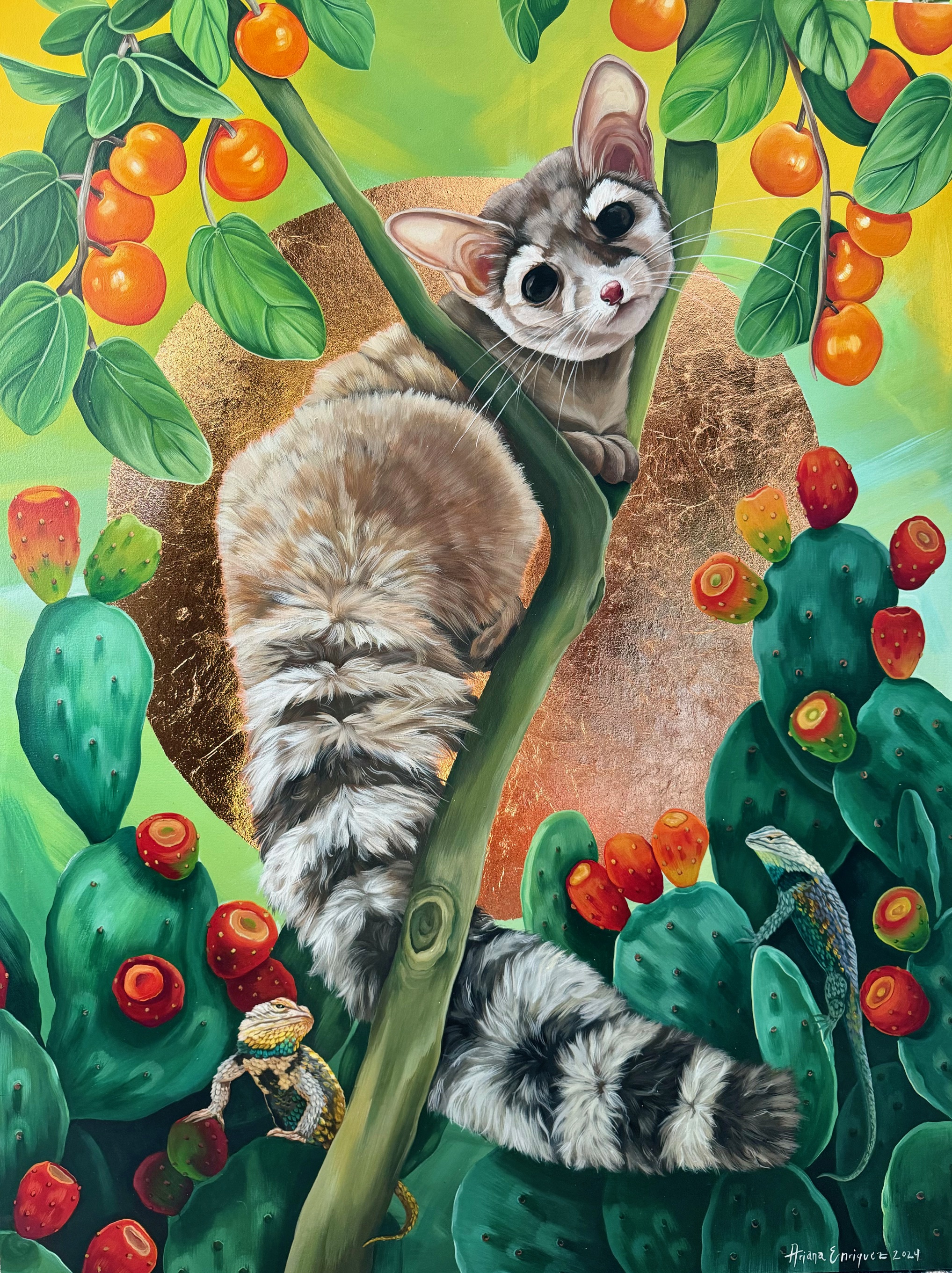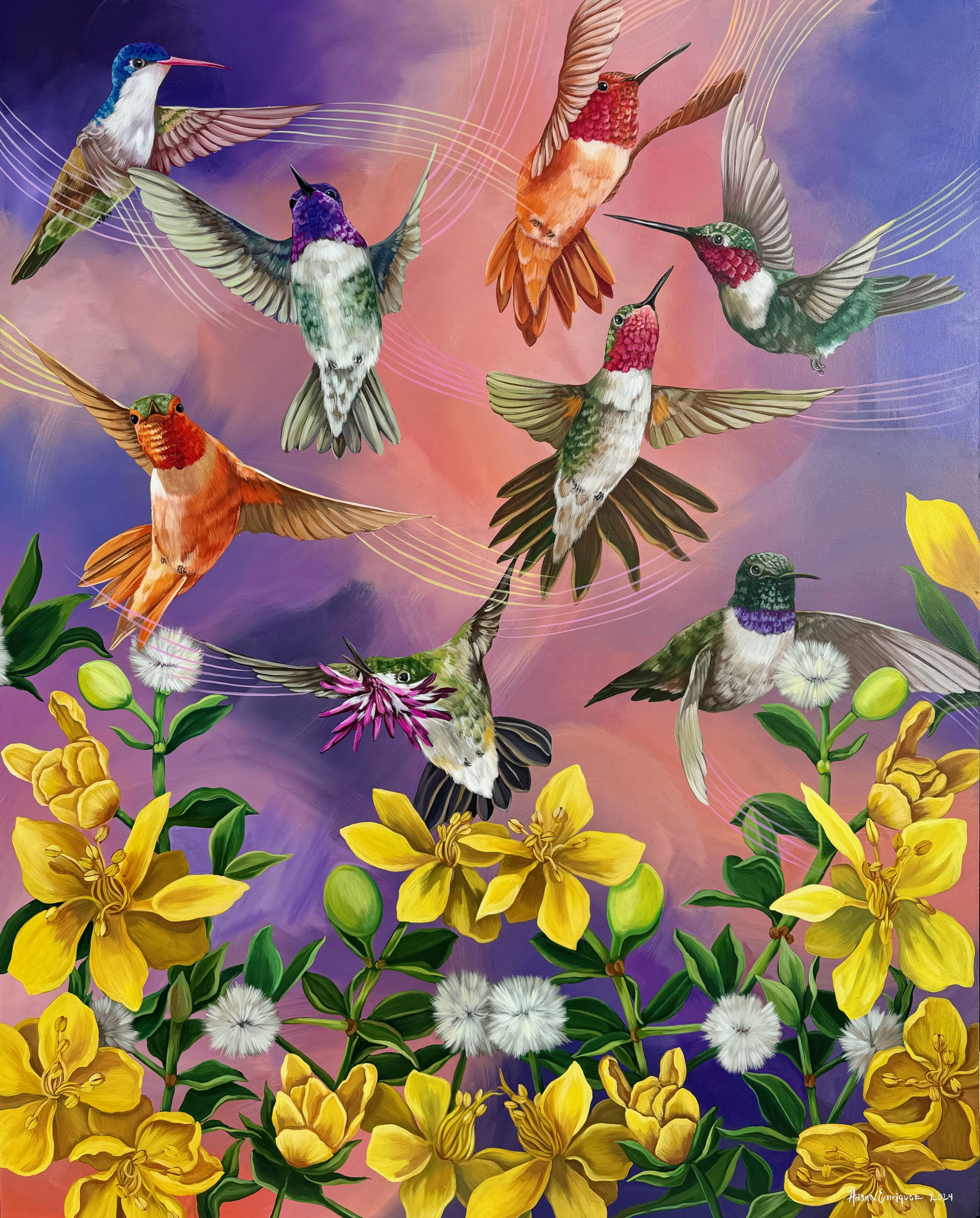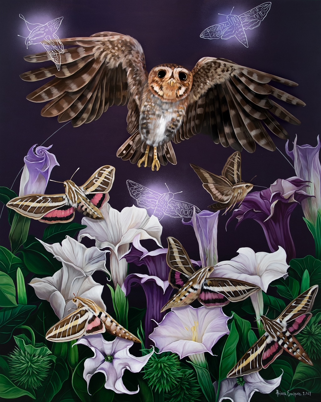 Ariana Enriquez (b. El Paso, Texas) is a visual artist based out of Mesa, Arizona. She received her BFA in painting and MA in art history from Arizona State University. After working in art museums for a decade, Enriquez started her own mural business in 2022. Finding meditative and self-healing qualities in the outdoors, Arizona’s natural landscape serves as Enriquez’s largest source of inspiration. The botanical and ornithological subject matter portrayed in her work are reflections of her experiences, metaphors of her family and extensions of her identity. Enriquez primarily works with acrylics in her studio and mural practice. Her clients have included Tostitos, Shane Company, Desert Botanical Garden and South Phoenix’s beloved flower shop, Baseline Flowers. Seeking to honor the nuances of nature’s details, Enriquez hand paints every aspect of her work. She hopes to show how beauty can be found in the small things that surround us.