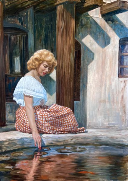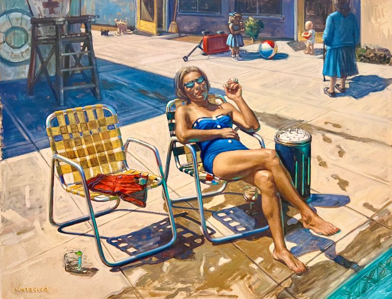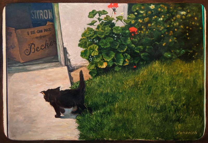 Cheryl Juracich (b. 1986) is an American painter whose work moves between memory, spirit, and the quiet happenings of everyday life. From an early age, she was drawn to watching how people inhabit time. The way patterns repeat across generations. How small private moments become the archival material of nostalgia. This instinct sits at the center of her practice today. Cheryl’s current body of work grew out of an early fascination with vernacular photographs. Uncurated, unguarded moments captured without an awareness of their future significance. These images became a portal. In them, she recognized familiar inheritances, reminders that personal experience is never isolated but part of a larger, ongoing human rhythm. Her paintings merge this archival sensibility with a luminous, fractured approach to light and color. Edges blur, time folds, and scenes feel suspended somewhere between lived memory and imagined recollection. Rather than pursuing exactness, she leans toward suggestion. Imperfection becomes a record of movement, a reminder that everything in respect to identity, environment, and history is in continual flux. The visual language that has emerged is dreamlike, nostalgic, and psychologically charged. Cheryl’s work seeks to dissolve strict dualities and reveal the sacred within ordinary moments. By weaving together multiple eras and emotional terrains, her paintings invite viewers into a kind of temporal conversation; one where the past hums beneath the present, and where the future feels tethered by the traces we leave behind.