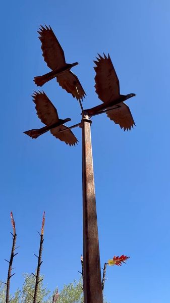 Daniel Moore grew up in Iowa City and attended the University of Iowa. He obtained his BFA in Graphic Design & Photography and minored in Ceramics and Metalwork/Jewelry. Upon graduation he relocated to Phoenix, AZ. and worked full time as a graphic designer for a variety of corporate entities. Inspired by the works of Ansel Adams, he pursued his love of photography by photographing the natural world while hiking, backpacking and mountain biking throughout Arizona. At his last position, he was introduced to working with metal and welding, self-taught, Daniel expanded to 3-Dimensional pieces, starting The Oxide Studio in 2010. Graphic representations of Arizona’s unique plant life were the inspiration for his botanical themed panels, the first pieces created at The Oxide Studio. His photographic background influenced the choice to “frame” each design within the confines of a rectangle, producing a contemporary, somewhat formal presentation that contrasts well with the colors and organic forms in its environment. In addition to showing his work in galleries in the Phoenix Metropolitan area he has been commissioned to create many works on all scales for both residential and commercial clients. His completed projects include inspired sculptural pieces, memorable freestanding works, gateways, enclosures, furniture and more.The last few years have seen him move into the Public Art arena, an area he is strongly drawn to. His awards can be viewed in Arizona (Phoenix, Tucson, Tempe, Scottsdale, Chino Valley, Mesa), Oklahoma City, OK., Augusta, GA., The City of Henderson, NV, and Memphis Tennessee.
