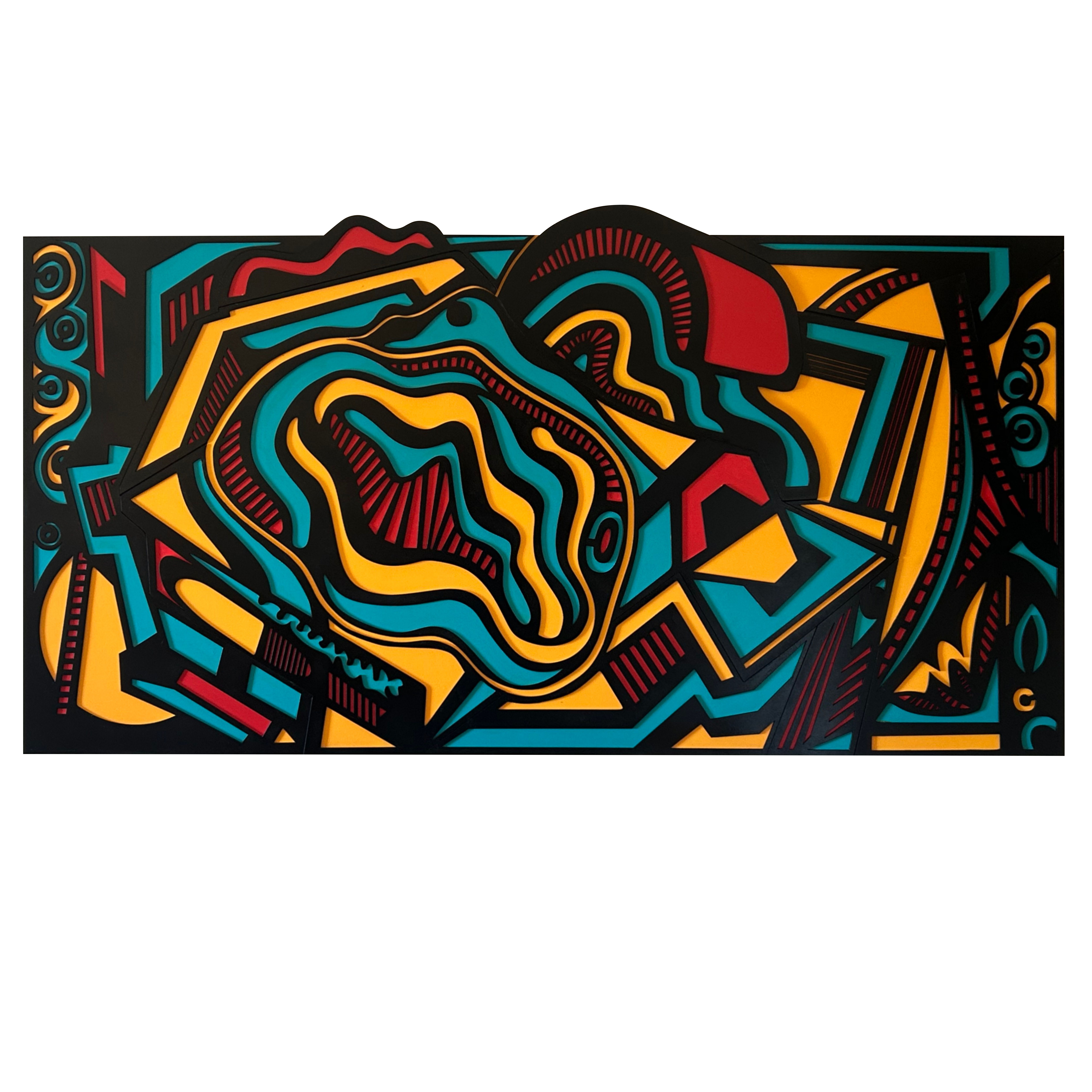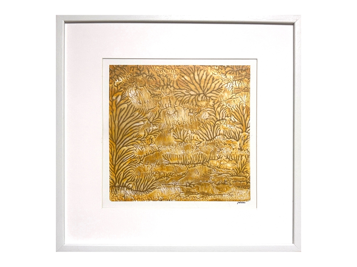 In 2021, I retired from my academic medical career as a pediatric hospitalist at Phoenix Children's Hospital. For years, while attending meetings and lectures, I mindlessly doodled on napkins, scrap paper, and styrofoam cups. Because so many of these little drawings had hard edge architectural shapes, I called them "Subconscious Constructions". I now use these little drawings as "blueprints" for abstract, colorful pieces that involve multiple layers of laser-cut plywood. A second body of work involves a technique called decalcomania, in which paint is compressed between two flat planes. When the planes are separated, surface tension and the paint viscosity form branching patterns, called viscous fingering, much like in a Rorschach test image. This technique was popular with Surrealists such as Man Ray,Max Ernst, and Oscar Dominguez because the images were created by chance rather than through conscious control.