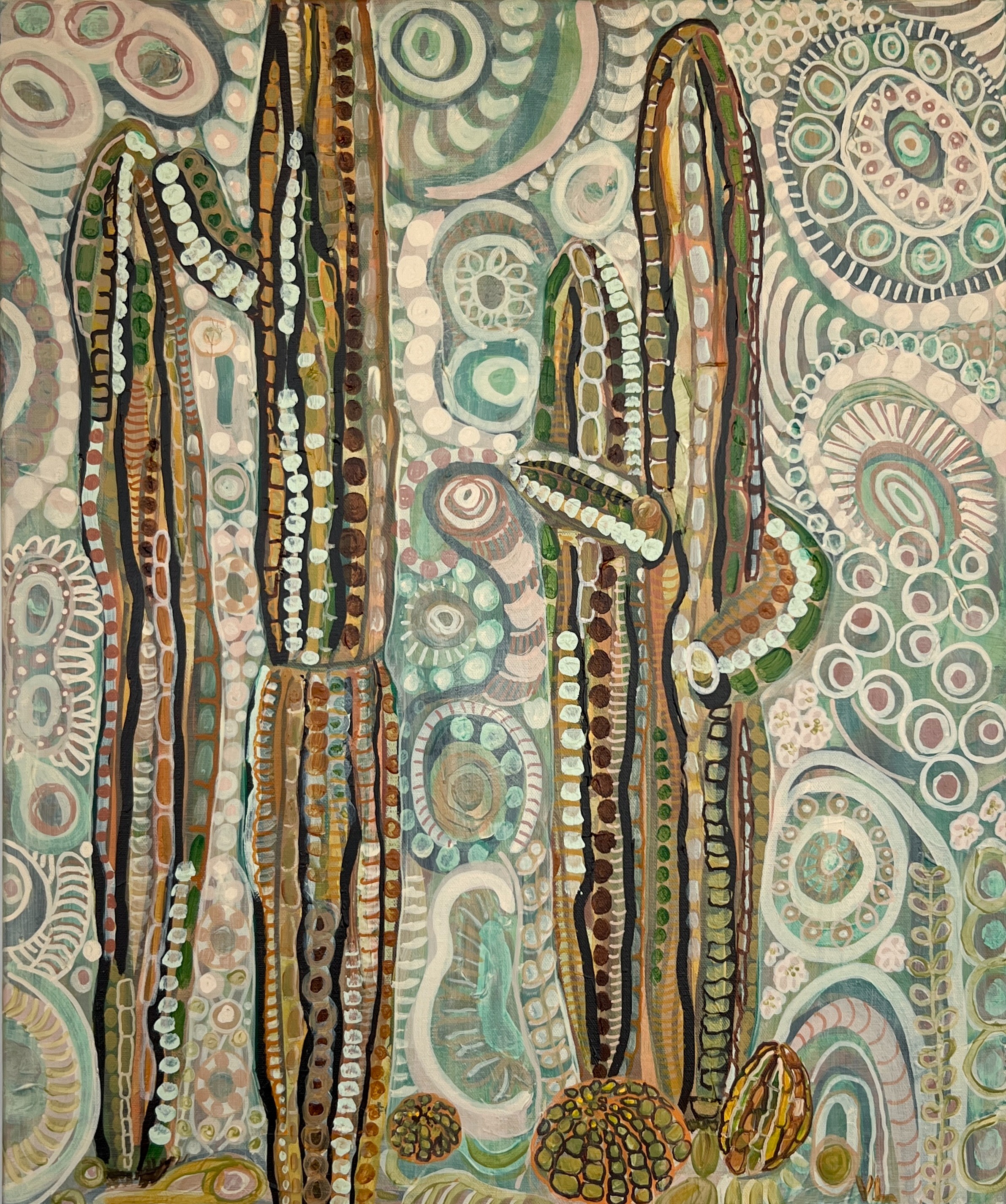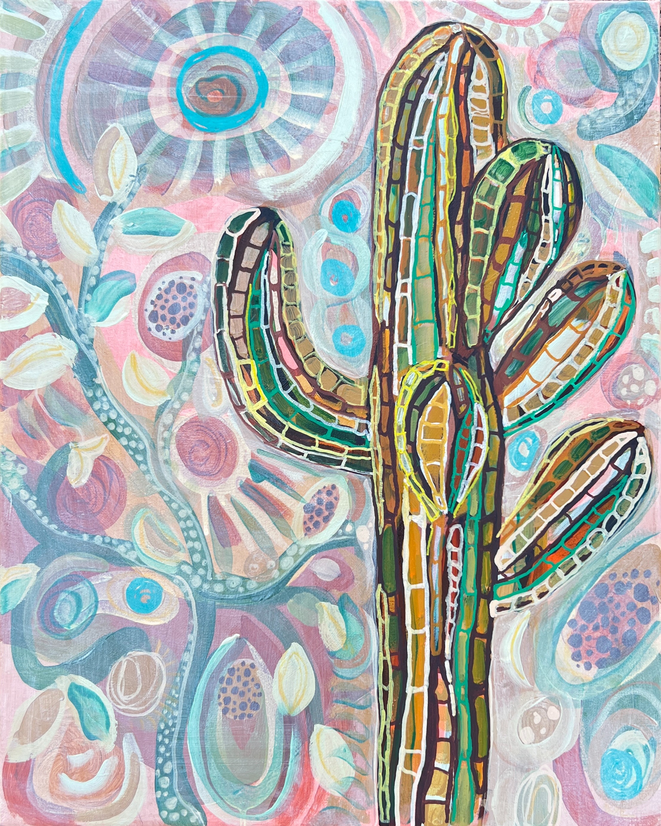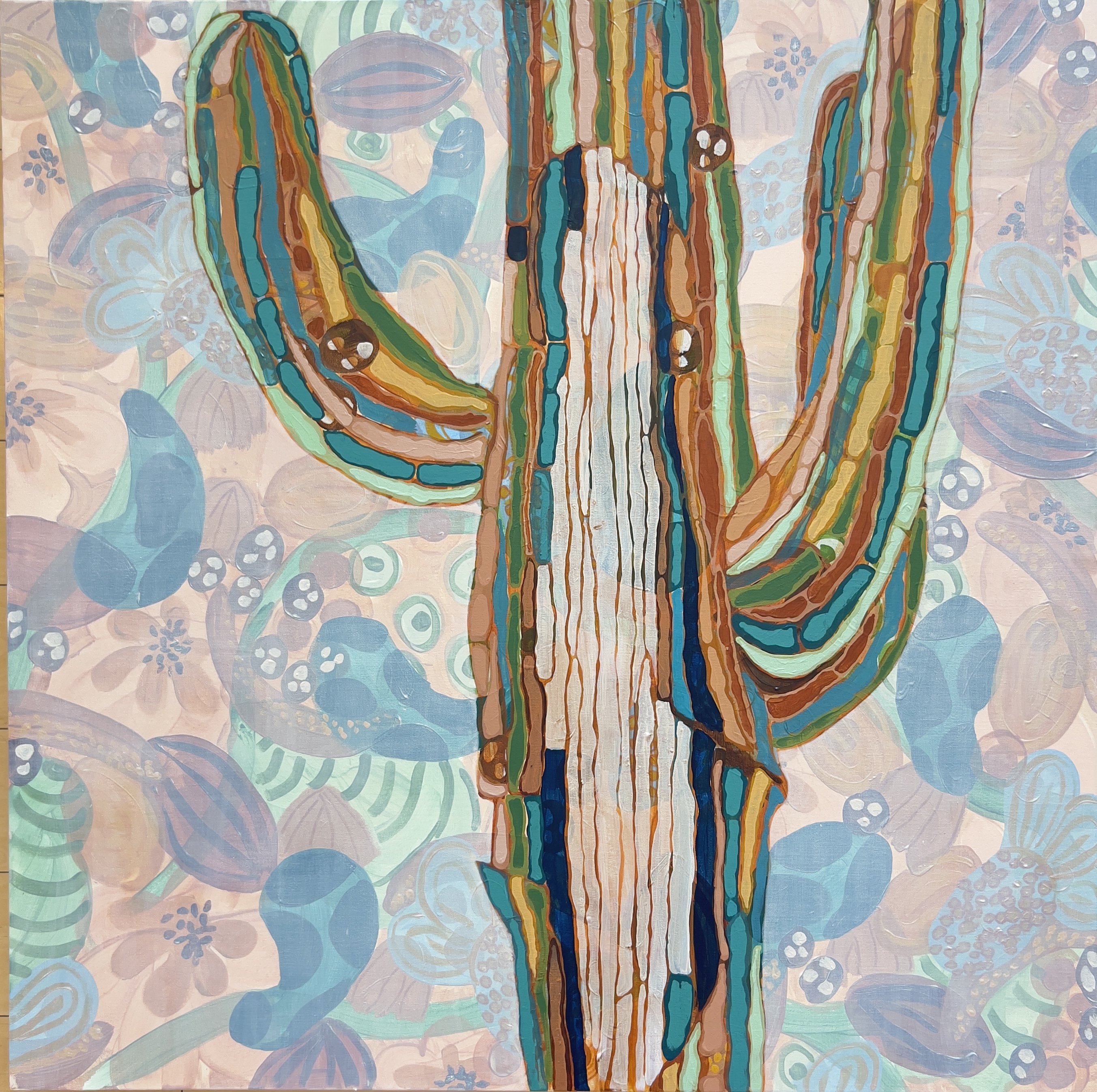 "Resilience," my first solo exhibition at Five15Artist Gallery, marks a deeply personal chapter in my artistic journey. After selling my boutique last September, I’ve been able to fully immerse myself in painting, exploring themes of strength, survival, and the abundant beauty in the desert. The collection centers around the idea of resilience, drawn from the desert landscape. The saguaro cacti, with their scars and marks, serve as powerful symbols of endurance in the face of extreme heat and challenging conditions. In this series, I capture not just the physical beauty of the desert but the quiet strength that lies in its very being. Additionally, this work reflects the resilience I’ve observed in my own family, particularly through the lens of our Italian heritage, the traditions of fishing, and the deep-rooted Catholic faith that binds us. Through personal portraits of ancestors and the visual language of our shared history, I explore themes of devotion, perseverance, and grace in the face of life’s trials. Ultimately, my paintings seek to honor both the sacred beauty of the land and the unwavering spirit of family, faith, and tradition that continues to shape who I am.