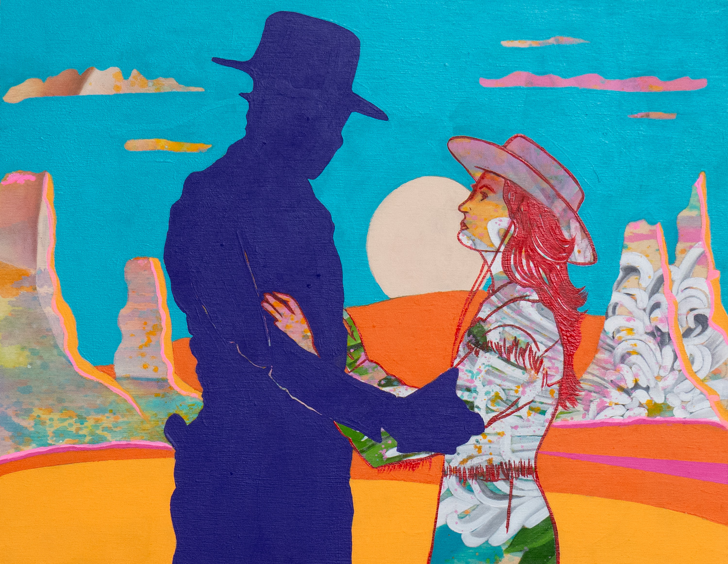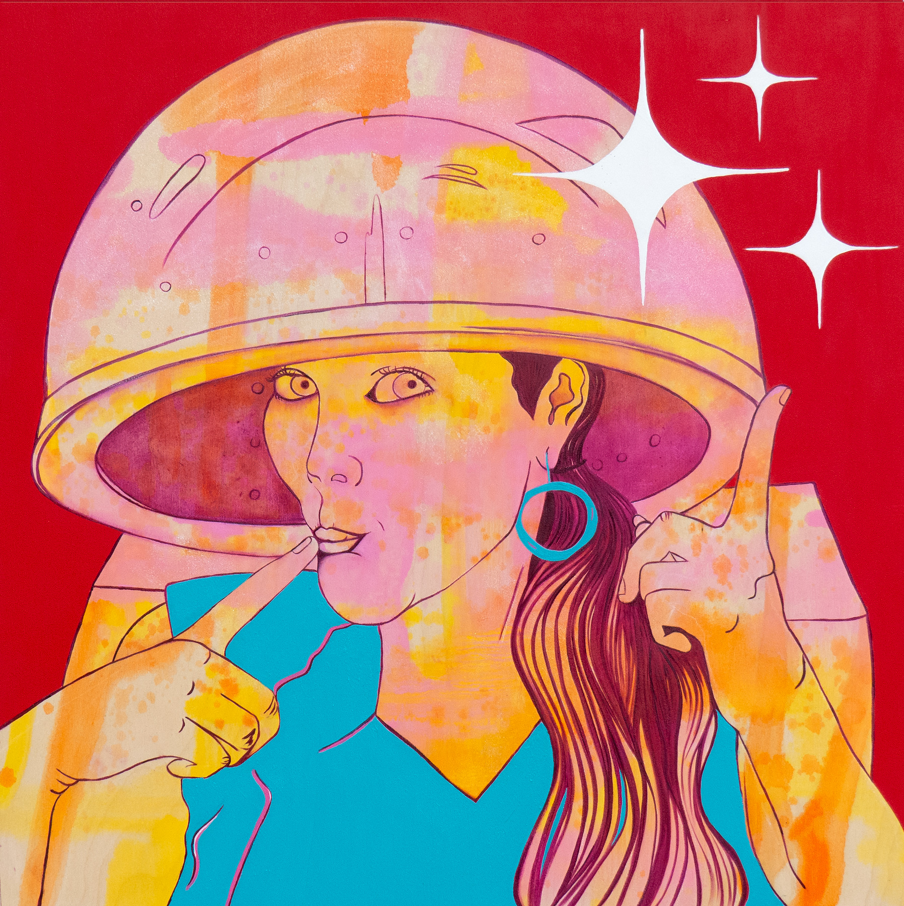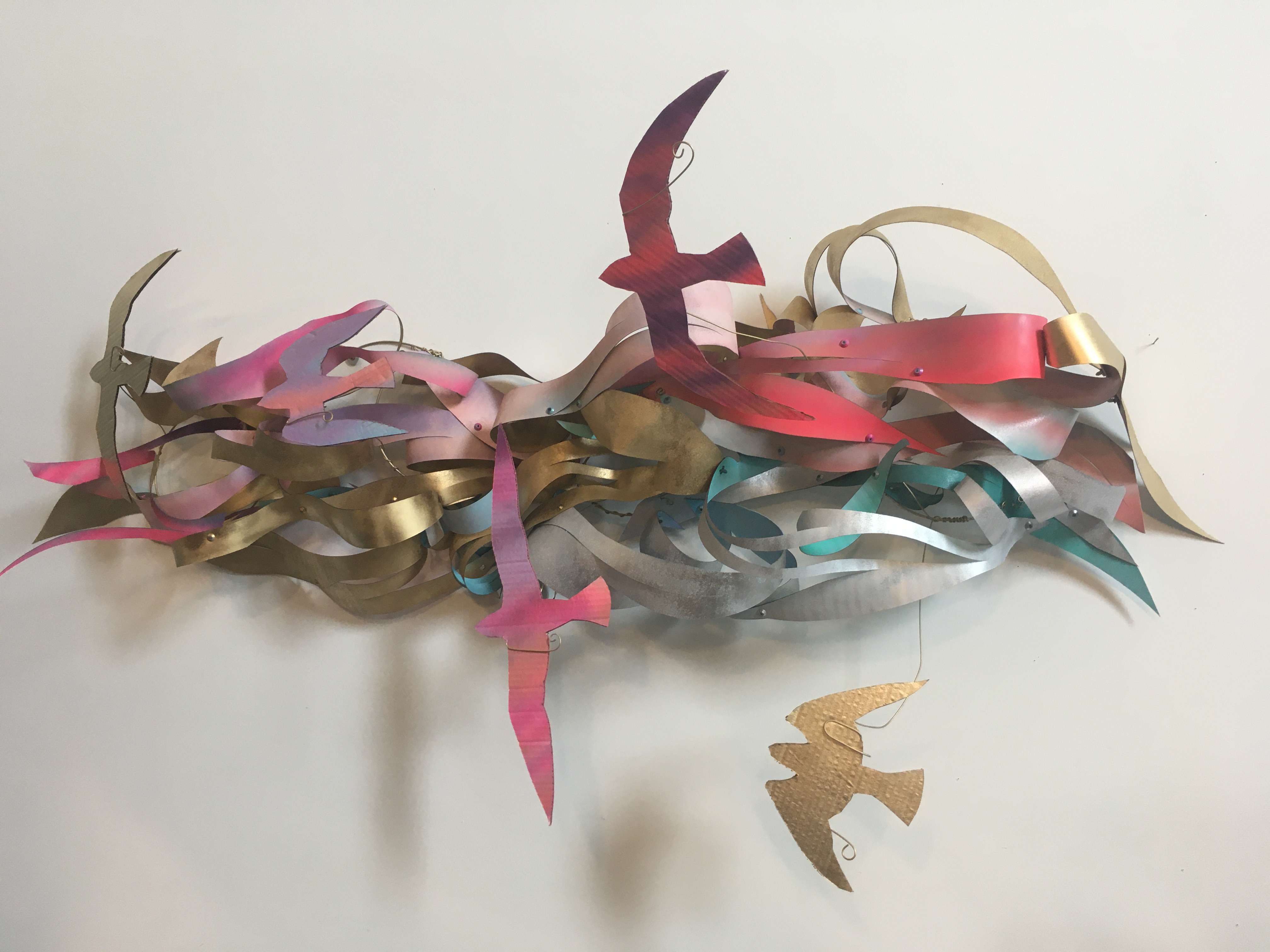 Charmagne Vasquez is an artist of contemporary paintings, drawings, and sculptures. Her current works often focus on interconnectedness and humankind’s role within earth’s dynamic biology. The artworks are made spontaneously with traditional and non-traditional media, as Vasquez builds up complex, colorful layers. Viewers experience organic landscapes and menageries. She expresses the tension of daily human occurrences, in parallel to the vast, interconnected web of life. Urban and feral. Civilization and hinterlands. She moves away from paradigms of personifying nature and magical thinking, and toward a curiosity-led perspective of better understanding flora and fauna. A work may contain references to the scientific world, as well as a rock and roll anthem. Having reverence of nature, of which we human animals are a part, is a very major theme. With the building up of each layer, she watchfully responds to emerging forms. Vasquez’s process simultaneously radiates in all directions, with many creative projects cross-pollinating in her Phoenix, AZ studio.
