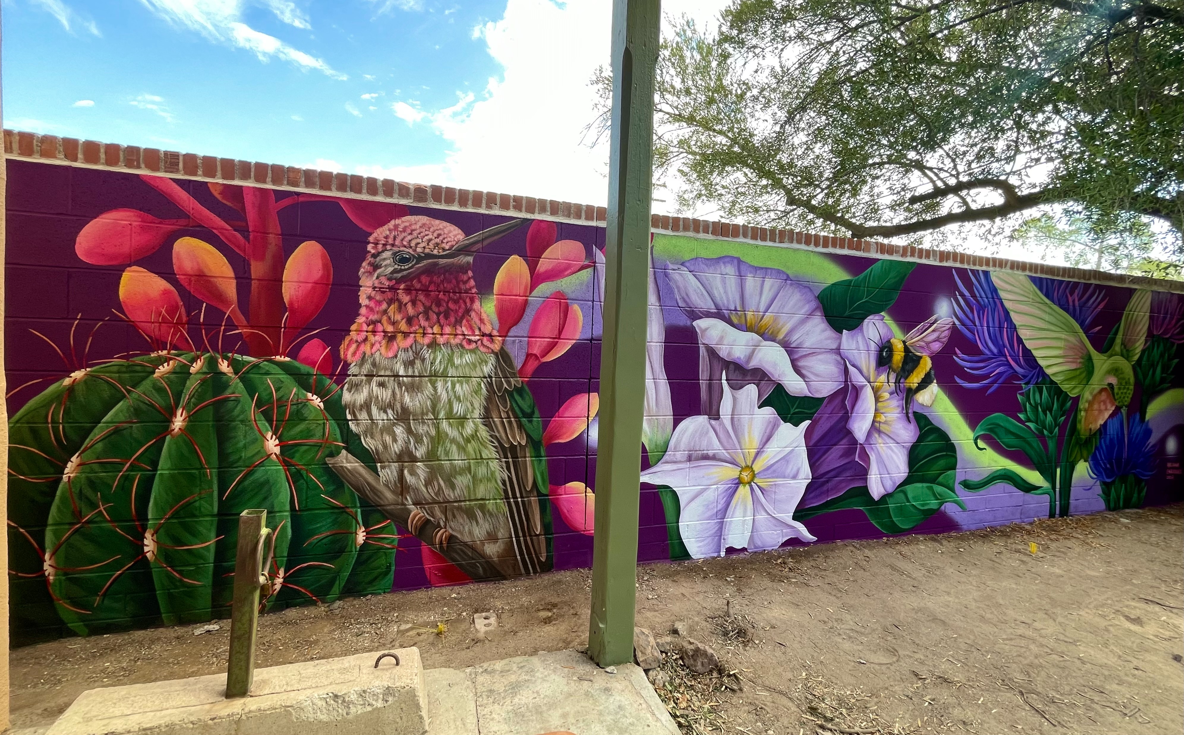 Ariana Enriquez (b. El Paso, Texas) is a visual artist based out of Mesa, Arizona. She received her BFA in painting and MA in art history from Arizona State University. After working in art museums for a decade, Enriquez started her own mural business in 2022. Finding meditative and self-healing qualities in the outdoors, Arizona’s natural landscape serves as Enriquez’s largest source of inspiration. The botanical and ornithological subject matter portrayed in her work are reflections of her experiences, metaphors of her family and extensions of her identity. Enriquez primarily works with acrylics in her studio and mural practice. Her clients have included Tostitos, Shane Company, Desert Botanical Garden and South Phoenix’s beloved flower shop, Baseline Flowers. Seeking to honor the nuances of nature’s details, Enriquez hand paints every aspect of her work. She hopes to show how beauty can be found in the small things that surround us.
